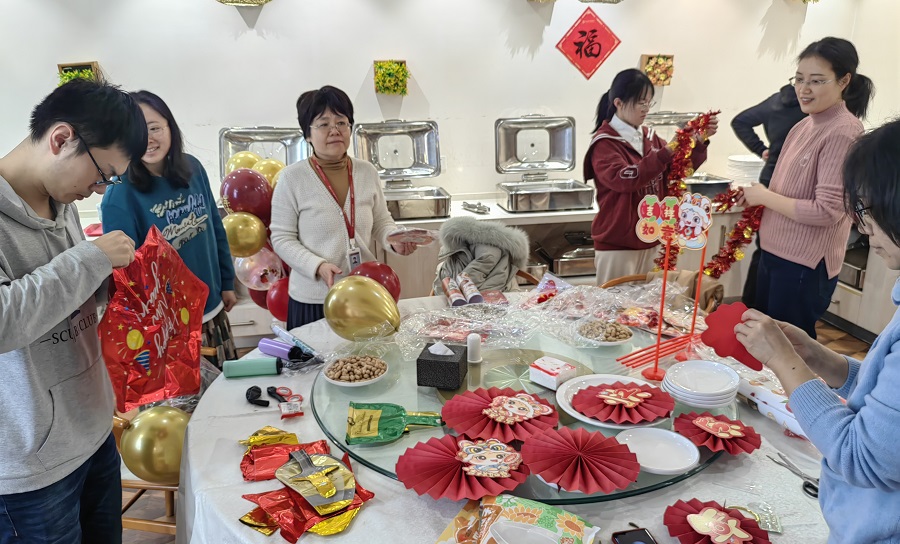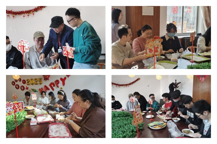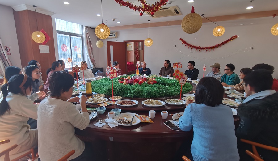 随后大家自己动手包的饺子煮熟上桌,同学们在用餐之余,各自做了自我介绍,分享近期的学习生活情况、留所计划以及目前存在的困惑,所领导和教育处老师纷纷给予耐心解答。赵志刚书记和舒春英书记也对留所的学生表示慰问,并送去新年祝福,希望大家新的一年认真科研、乐享生活、并在科研之余尽早考虑职业规划。