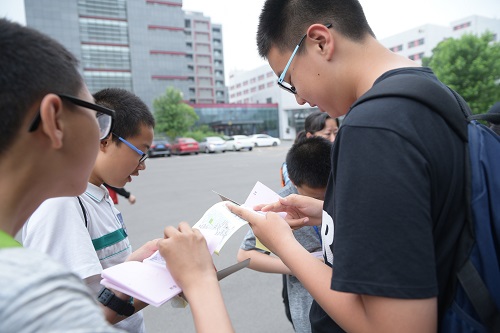 图为北京第十一中学学生在“公众科学日”接待处排队登记