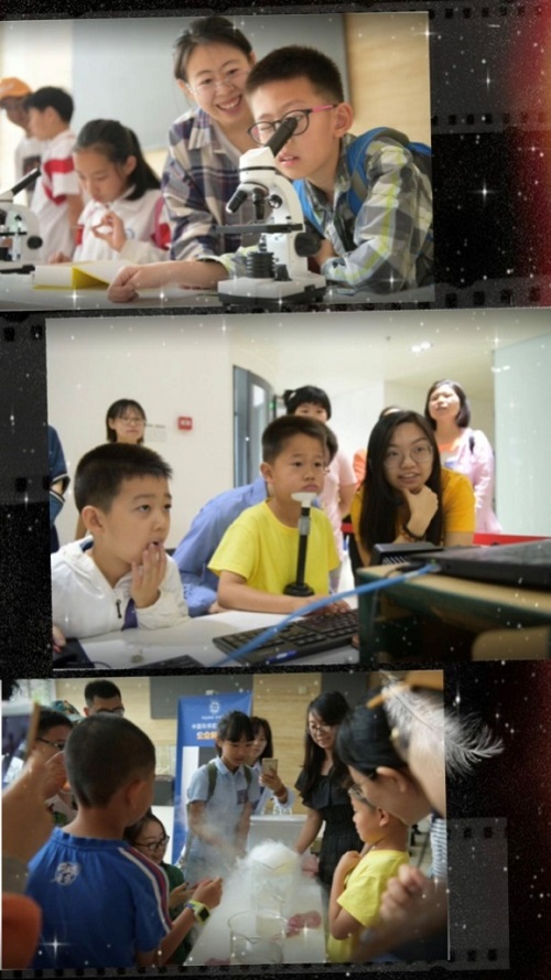 孩子们参与荧光成像、眼动实验、干冰瀑布等互动实验