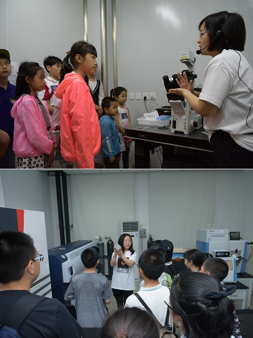 孩子们获准进入科研重地。上图为生物成像中心,下图为蛋白质平台质谱中心