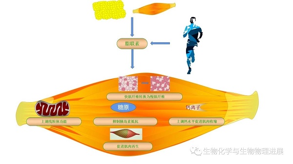 脂联素(adiponectin/ADPN)是脂肪分泌的一种具有增加胰岛素敏感性、脂肪酸分解代谢和积极调节血糖等功能的内源性多肽或蛋白质。ADPN主要通过与脂联素受体(adiponectin receptor,AdipoR)(包括两种亚型:AdipoR1和AdipoR2)结合来发挥其有益的多效性作用,研究显示AdipoR1在骨骼肌中普遍表达,而AdipoR2主要在肝脏中表达。肝脏和骨骼肌是机体糖脂代谢的主要器官。糖在人体内的代谢过程摄食后部分葡萄糖分解提供能量,与此同时,肝脏和骨骼肌接受胰岛素刺激将血糖吸收合成肝、肌糖原。摄入的脂肪会在小肠内分解,在肝细胞内重新合成甘油三酯,然后以脂蛋白的形式运出肝,运送到皮下储存。如果脂代谢失常就会导致脂肪在肝脏器官内异位堆积,而骨骼肌平时供能以氧化脂肪酸为主、糖酵解为辅。