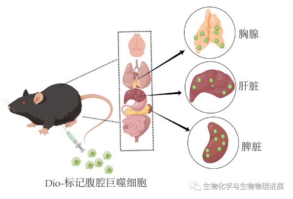 DiO标记腹腔巨噬细胞的示踪与定位
