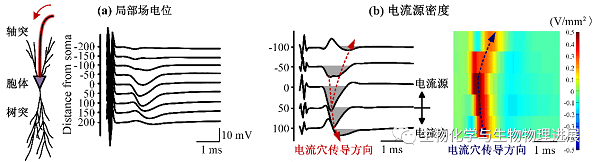 图4 轴突兴奋逆向传导至神经元胞体附近时产生的局部场电位与电流源密度