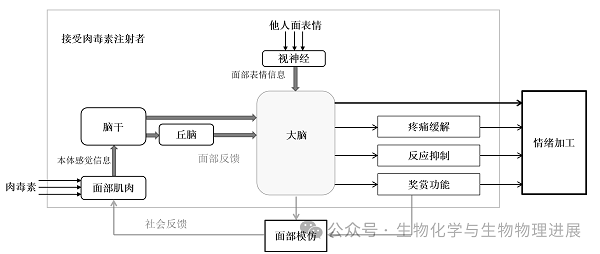 如果一只熊来追我们,我们是先感到害怕再逃跑,还是先逃跑再感到害怕?对于这个问题下意识的回答可能是"先怕后跑"。然而,有一种情绪理论却支持"先跑后怕",这就是詹姆斯-兰格的情绪外周理论。该理论认为:"悲伤由哭泣引起,愤怒由打斗所致",也就是先出现机体的生理变化,而后才激活相应的情绪体验。面部反馈假说(facial feedback hypothesis)正是基于此类理论,认为面部肌肉反馈对于个体的情绪体验和加工有着重要作用。包括肉毒素注射相关的研究在内,这一假设已得到大量研究的证实[9]。
