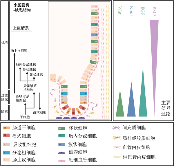 图1. 肠道干细胞生态位及其分化命运(改编自[11])