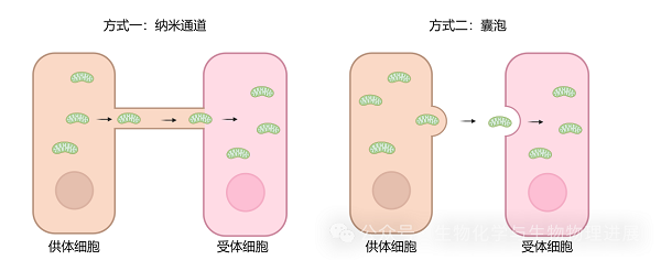 图1 线粒体在细胞之间交流的方式(图片素材来自Biorender)