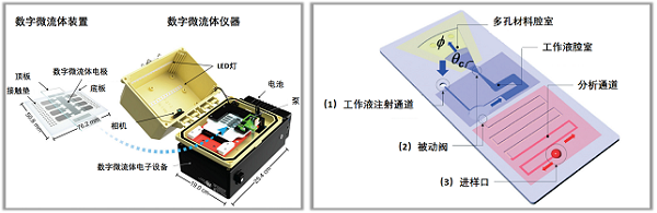图3 基于传统微流控的血型检测技术。(左)基于数字微流控液滴凝集血型检测设备[7];(右)基于 PDMS的手指驱动型微流控智能血型测定仪[6]。