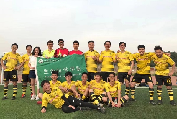 图4 中国科学院大学生命科学学院足球队合影(后排左七为詹坚鸿)