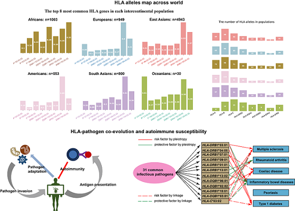 人类的免疫系统是抵御病毒、细菌等病原体的天然防线,而人类白细胞抗原(HLA)基因正是这场防御战的核心角色。HLA基因不仅决定了我们是否容易感染某些疾病,还深刻影响着人类种群的遗传多样性和进化方向。一些HLA基因在适应病原微生物环境的同时,也有可能因为基因多效性和遗传连锁改变影响群体的免疫疾病风险。