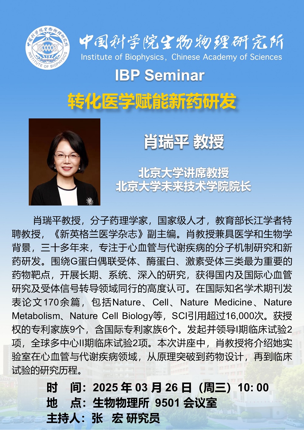 2025年3月26日上午10:00 IBP Seminar:转化医学赋能新药研发