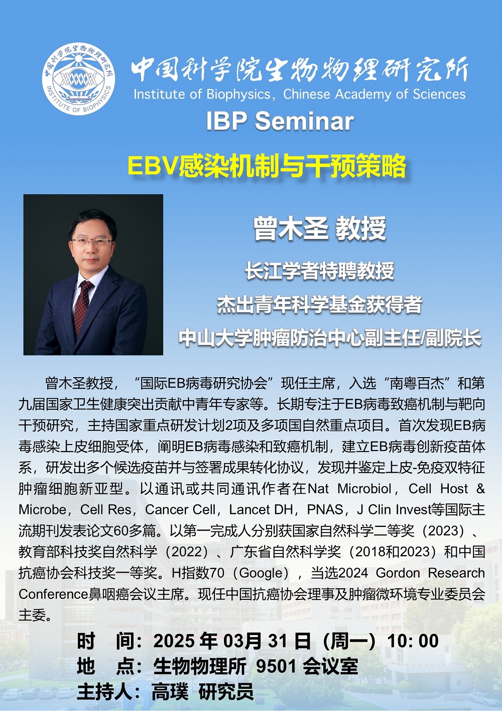 2025年3月31日上午10:00 IBP Seminar:EBV感染机制与干预策略