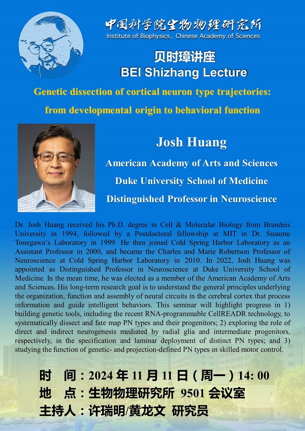 2024年11月11日下午14:00 贝时璋讲座:Genetic dissection of cortical neuron type trajectories: from developmental origin to behavioral function