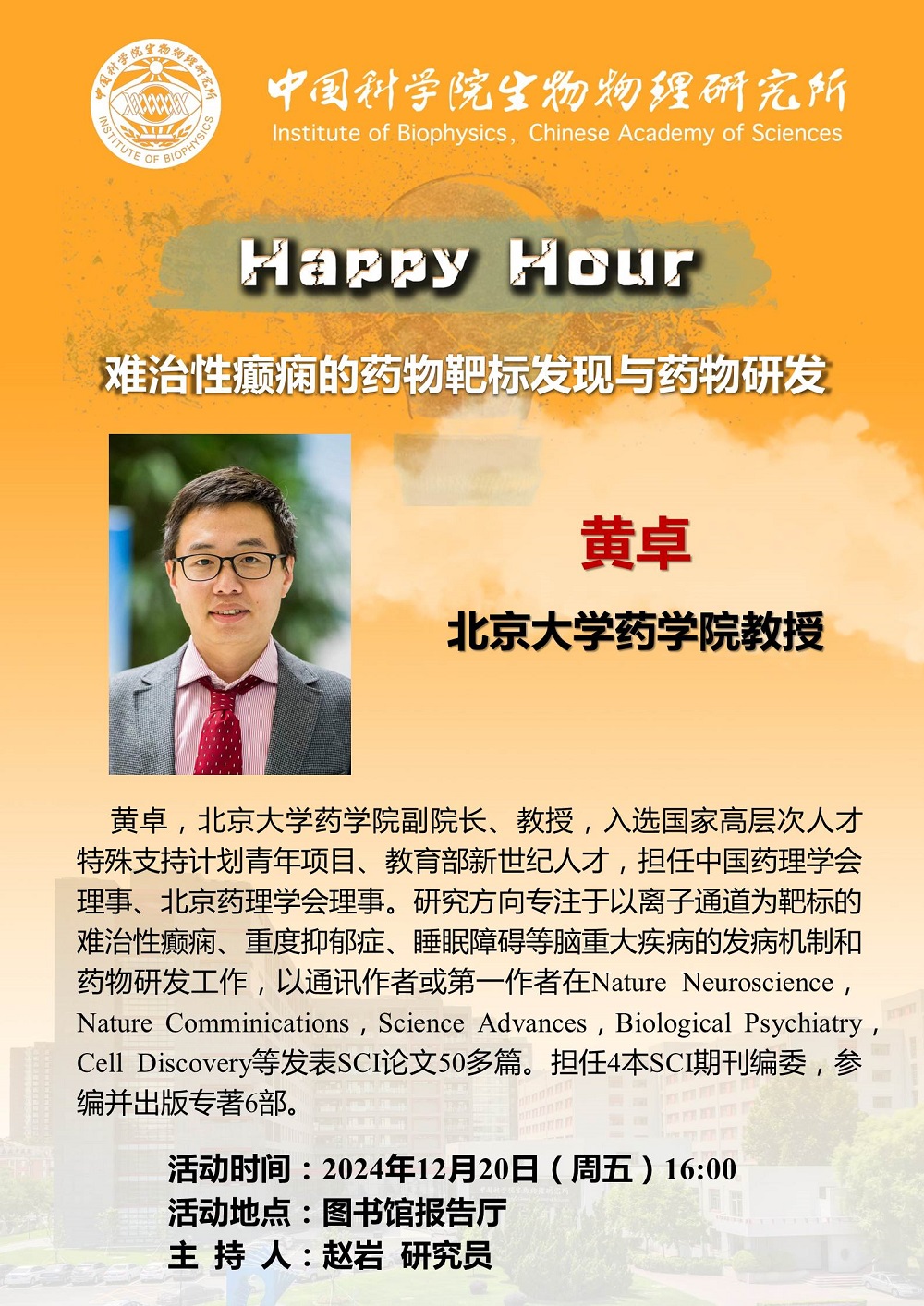 2024年12月20日下午16:00 Happy Hour:难治性癫痫的药物靶标发现与药物研发