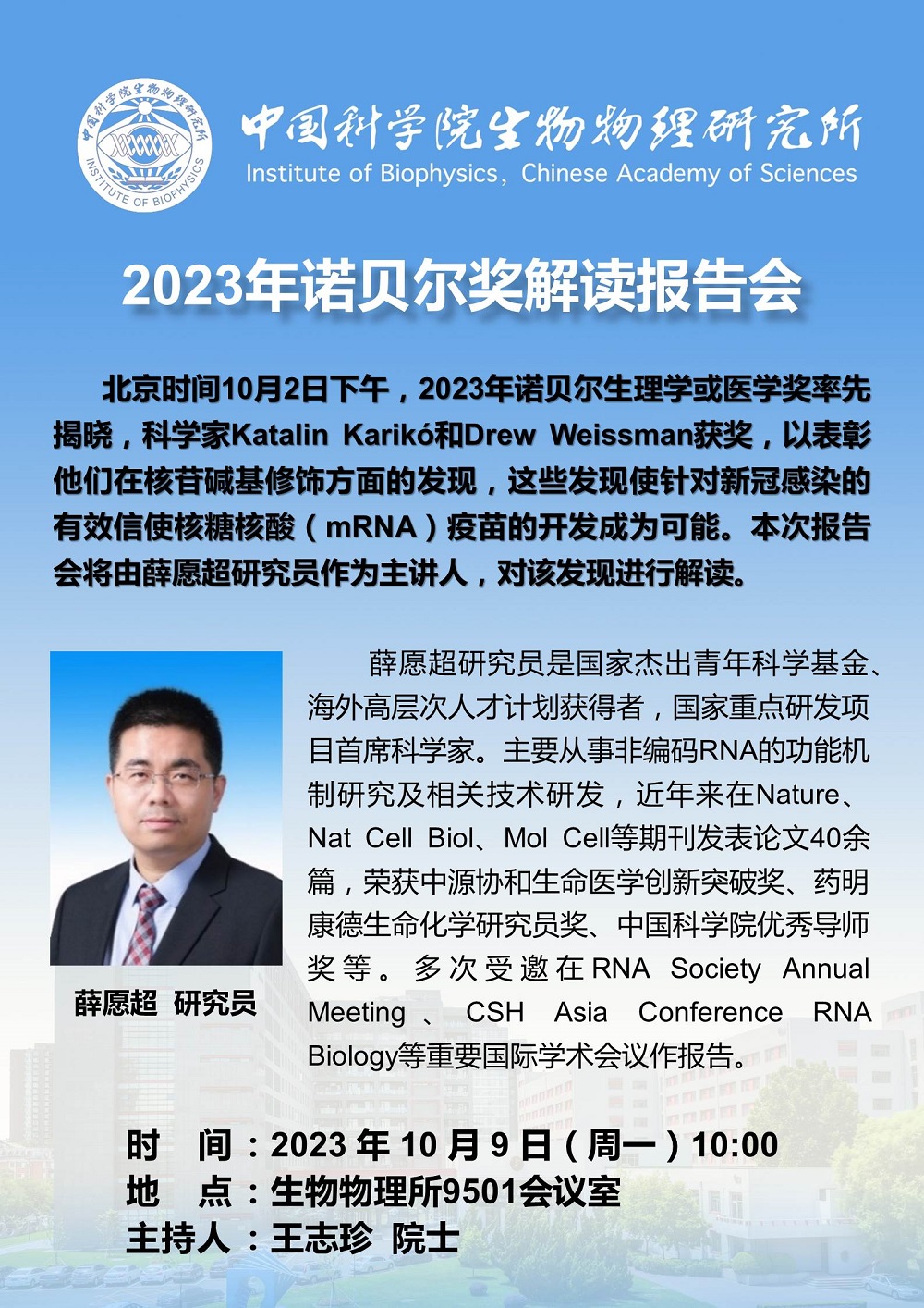 2023年10月9日上午10:00 :2023年诺贝尔奖解读报告会