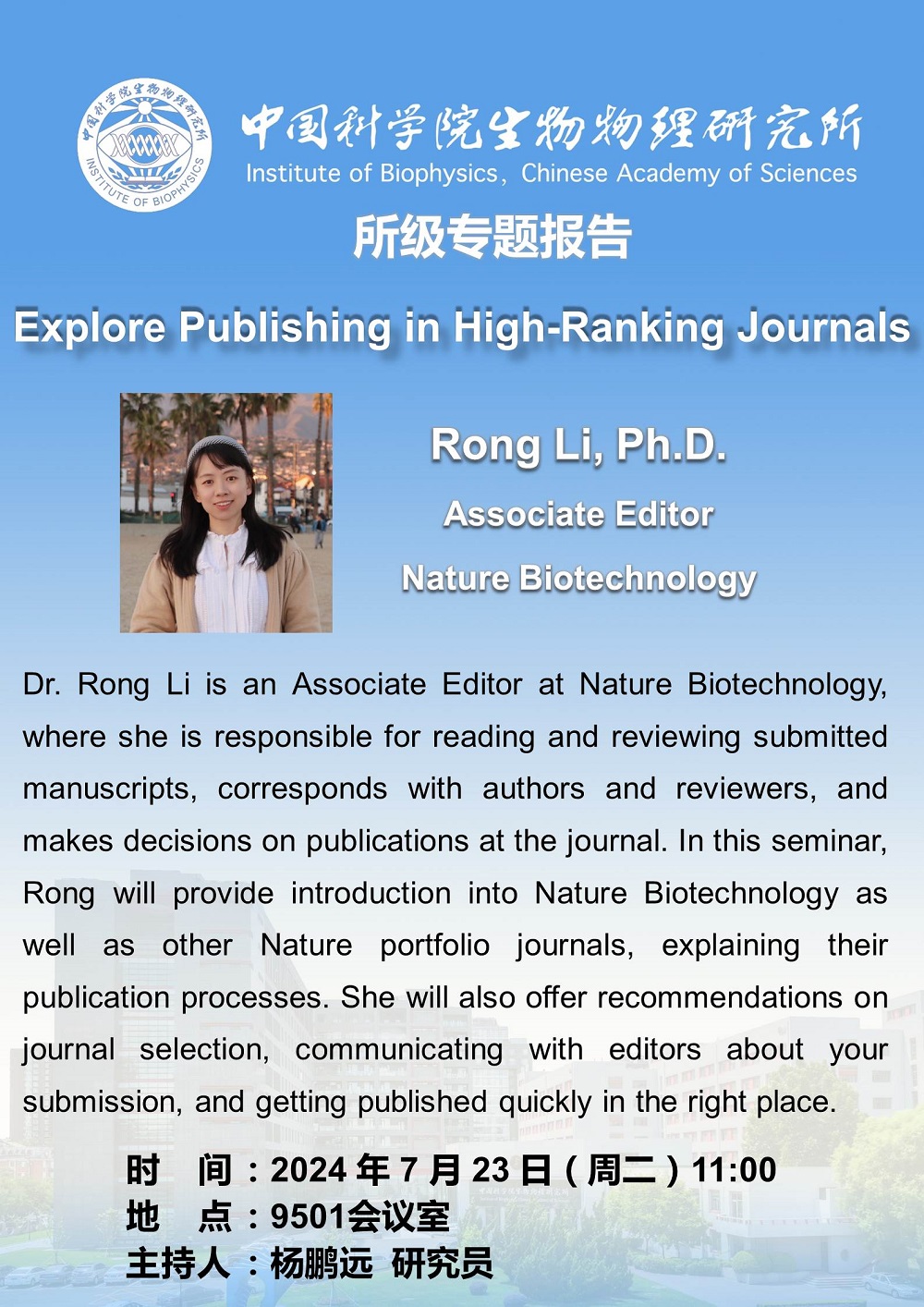 2024年7月23日上午11:00 所级专题报告:Explore Publishing in High-Ranking Journals