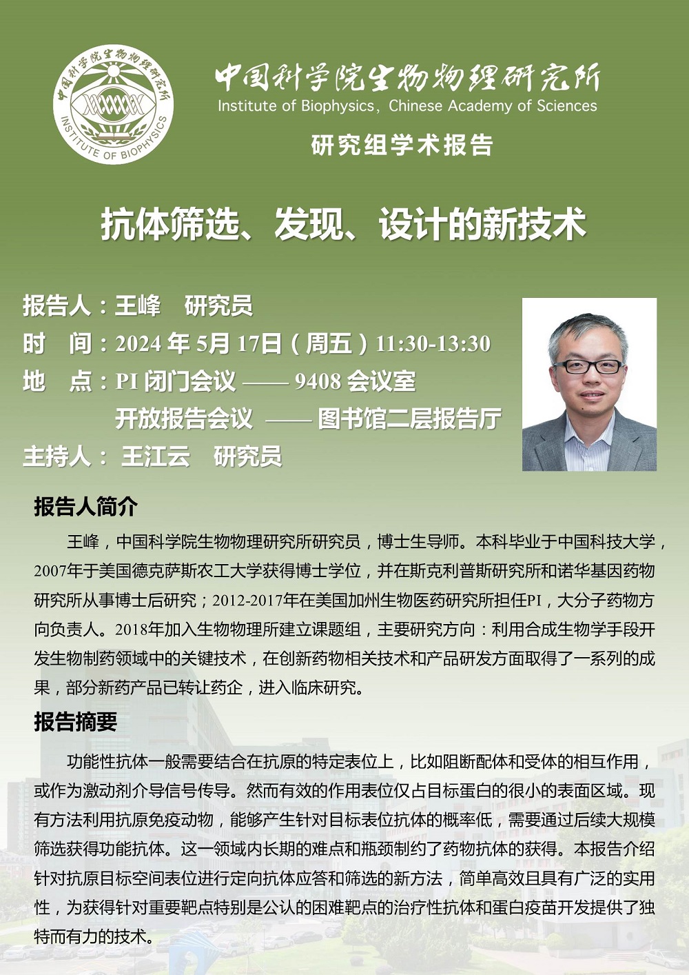 2024年5月17日中午11:30 研究组学术报告:抗体筛选、发现、设计的新技术