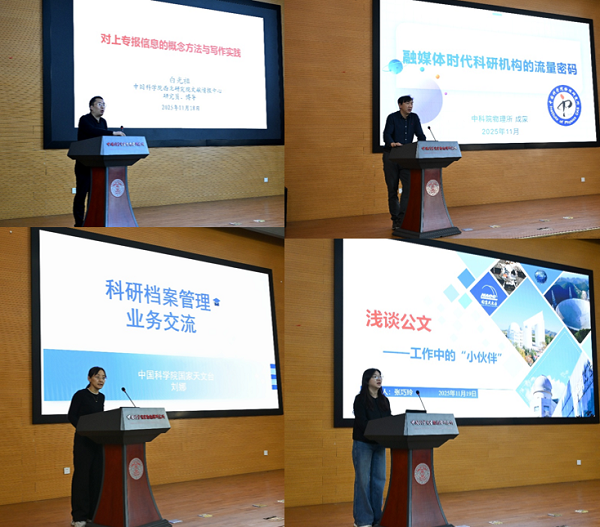 培训聚焦科技传播与文书档案管理等业务,为所内职工带来系统全面的知识分享与实践指导。中国科学院西北研究院文献情报中心主任白光祖研究员的《对上专报信息的概念方法与写作实践》、中国科学院物理研究所研究生部副主任(主持工作)成蒙的《融媒体时代科研机构的流量密码》等报告分享,引起了现场参与人员的共鸣,针对大家日常工作中遇到的困惑作了解答。中国科学院国家天文台副研究馆员刘娜和文书管理员张巧玲就科研档案管理与公文处理工作进行了完整、规范、体系化的讲解,夯实了理论基础,又提升了实践操作能力。